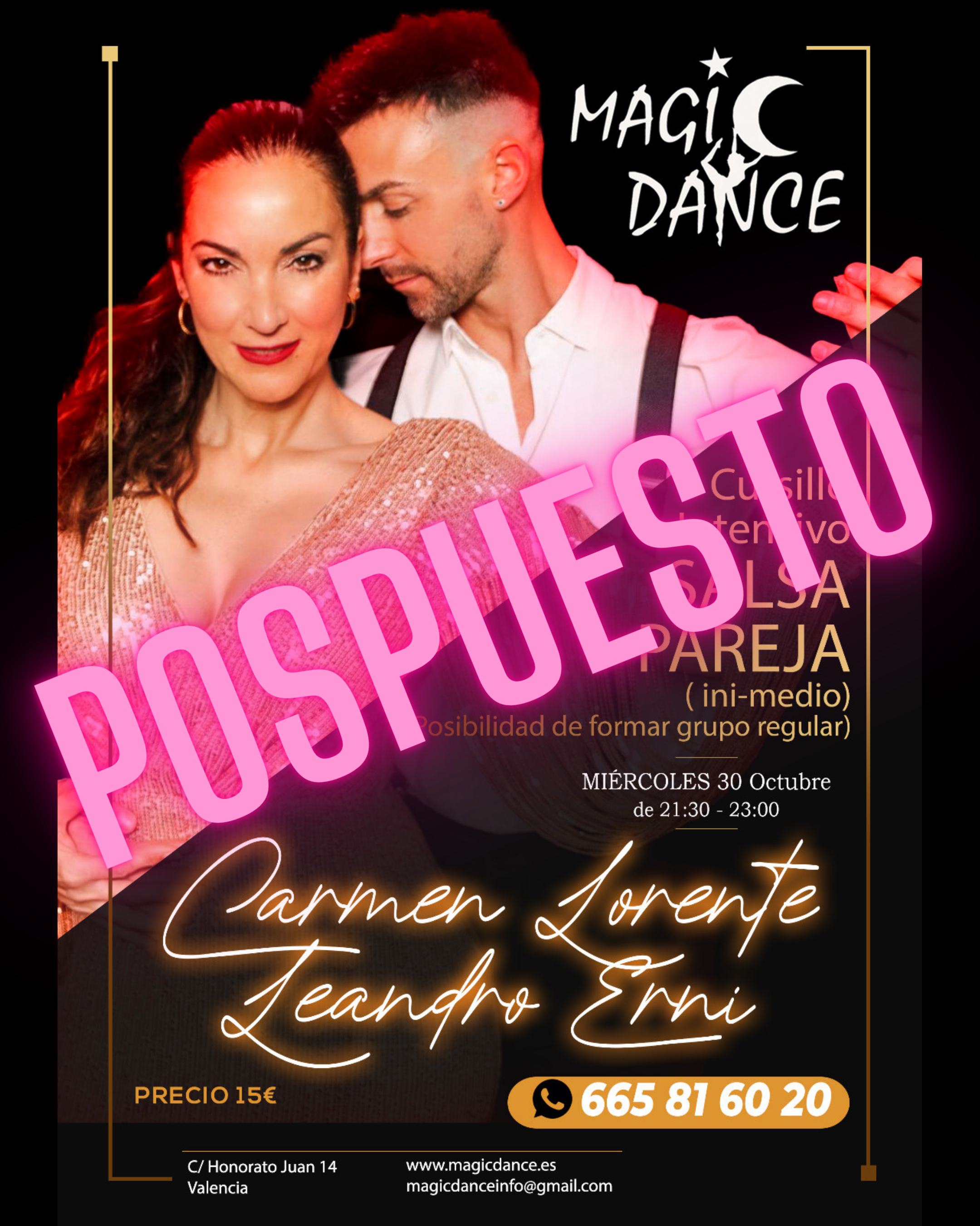 No te puedes perder el Cursillo Intensivo de Salsa en Pareja con Carmen Lorente y Leandro Erni. 🌟