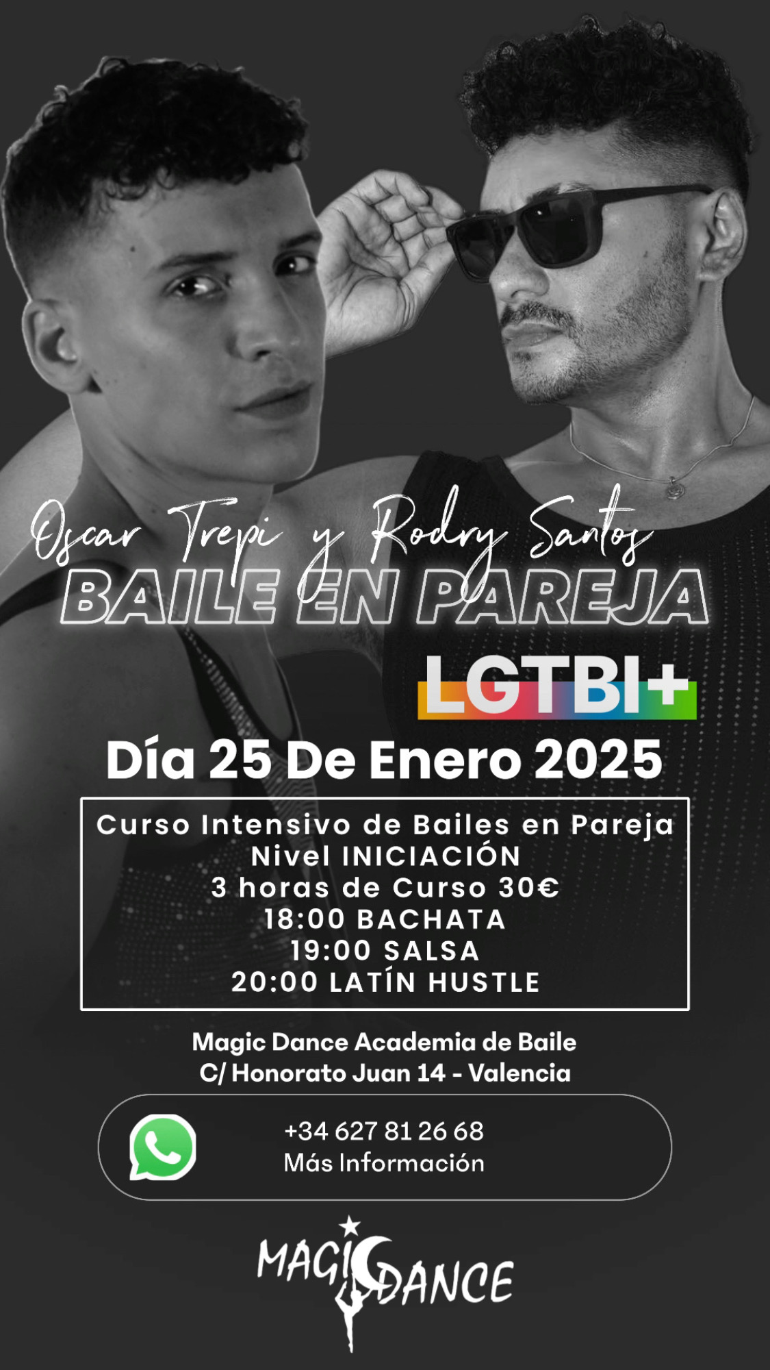 El próximo 25 de enero de 2025, vive una experiencia única en Magic Dance con el Curso Intensivo de Bailes en Pareja LGTBI+ 💃🕺.