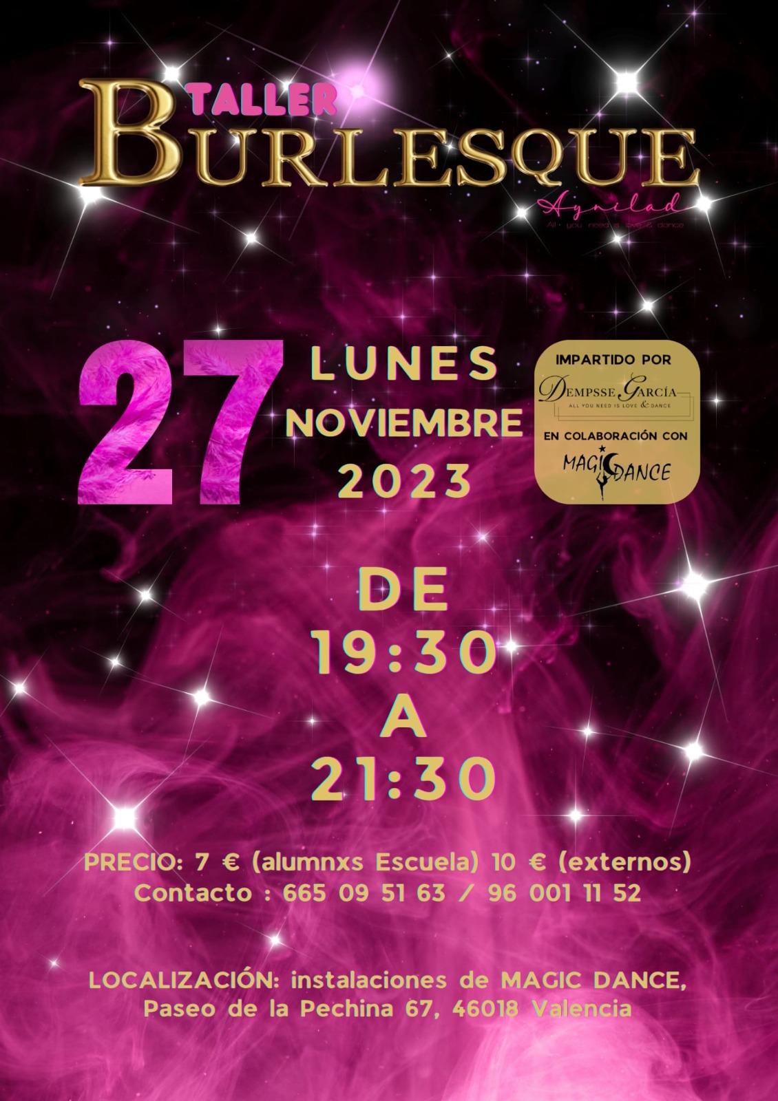 En Magic Dance, estamos emocionados de presentar un taller exclusivo de Burlesque impartido por la talentosa Dempsse García. ¿Estás listo para sumergirte en el mundo del burlesque, descubrir tu lado más seductor y ganar confianza en el escenario?